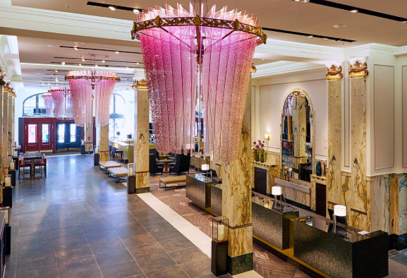 Standout: Designed to deliver an authentic local experience, Curio, A Collection by Hilton made its European debut with Reichshof Hamburg. The hotel, which opened in 1910, and received an Art Deco facade in 1920, unveiled a newly refurbished interior rich with original Empire and Art Deco detailing, timber and brass accents, marble columns, and a lobby reverted to its more spacious original architecture in July. Located in a landmark building near Hamburg’s main train station, Reichshof Hamburg delivers 278 beige-toned guest rooms (reduced from 300), six junior suites, and three one-bedroom suites—all with furnishings toasting the Art Deco era. Padded headboards are upholstered in leather, while lighting—surprisingly untraditional for a hotel room—includes both delicate pendent lights and light boxes fitted into the wall above the bed. The U.S. has 10 properties currently operating under the Curio brand, with several more under construction. Curio-branded hotels are also in Jamaica and Argentina.
